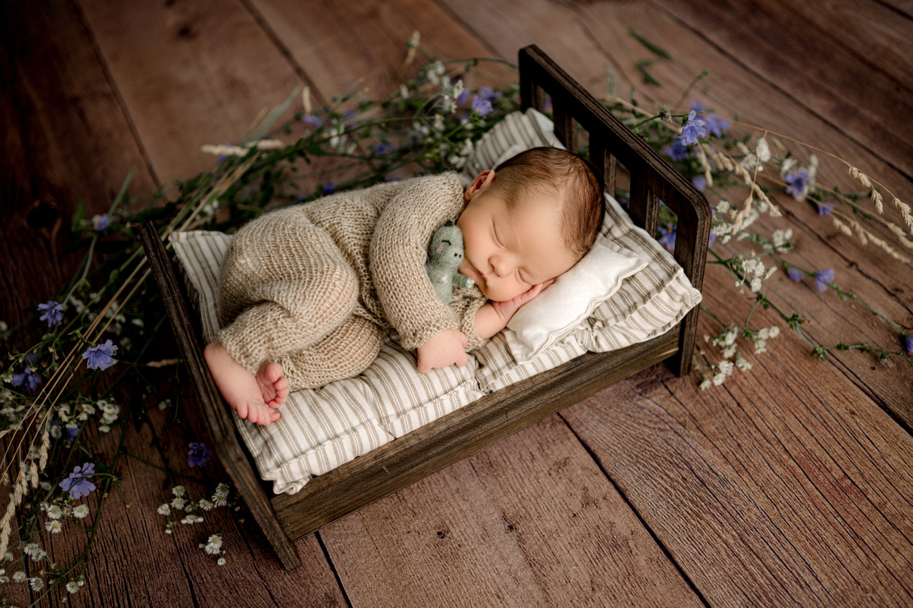 A: Our ideal studio time is between 7-14 days old. A little over is fine… but the older they get, the more difficult the session and the LONGER the session